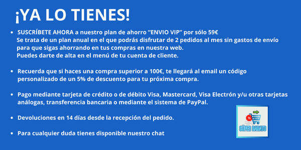 Este producto se entregará en 24h. para pedidos formalizados antes de las 12 PM. con destino peninsular.